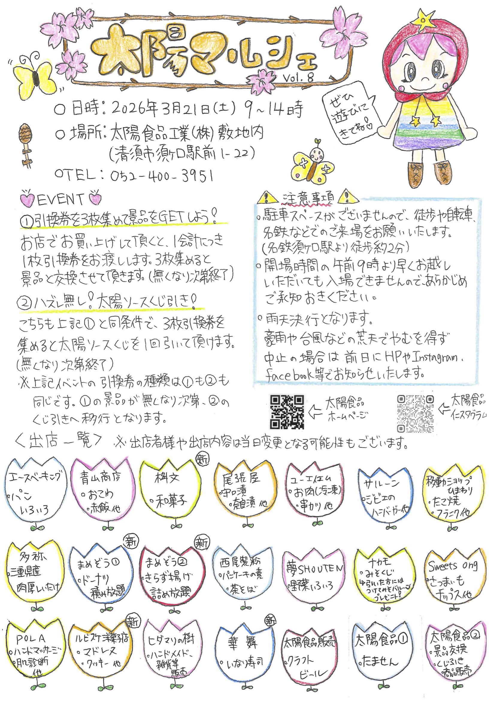 2023年3月18日(土)に、創業95周年記念& 地域感謝祭として太陽マルシェ Vol.2を開催!